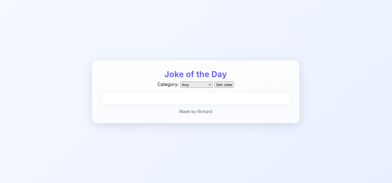A full-stack joke website built with Express.js that integrates the JokeAPI to deliver dynamic humor. Users can select from multiple joke categories (Any, General, Programming, etc.) and receive jokes. The application uses EJS templating to render jokes dynamically on the frontend.